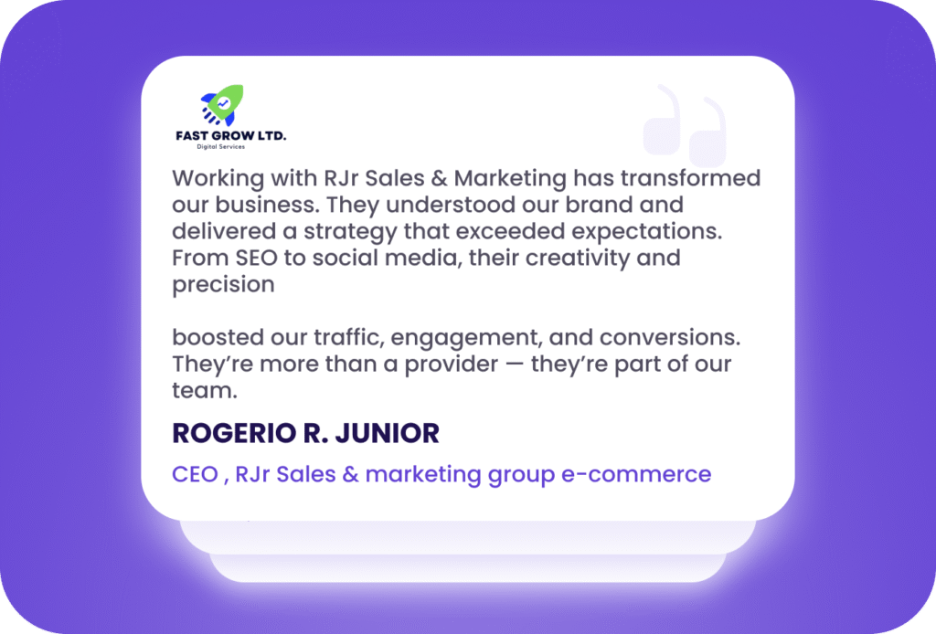 At RJR Sales and Marketing, our success is measured by the success of our clients. From startups to established brands, we’ve helped businesses achieve measurable growth through strategy, creativity, and data-driven execution. Here’s what some of our partners have to say: